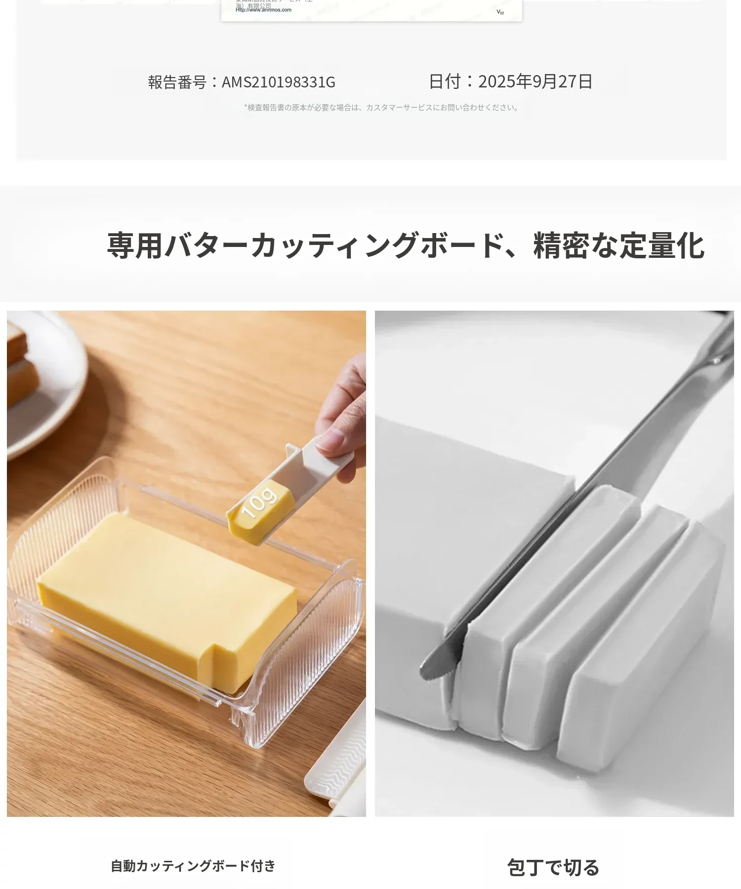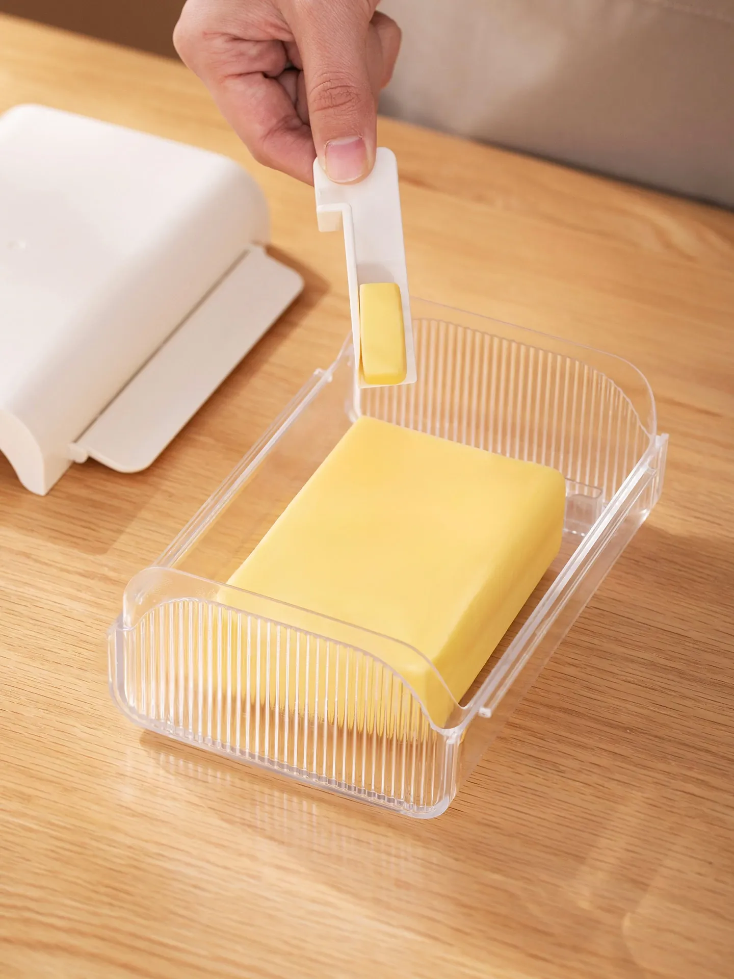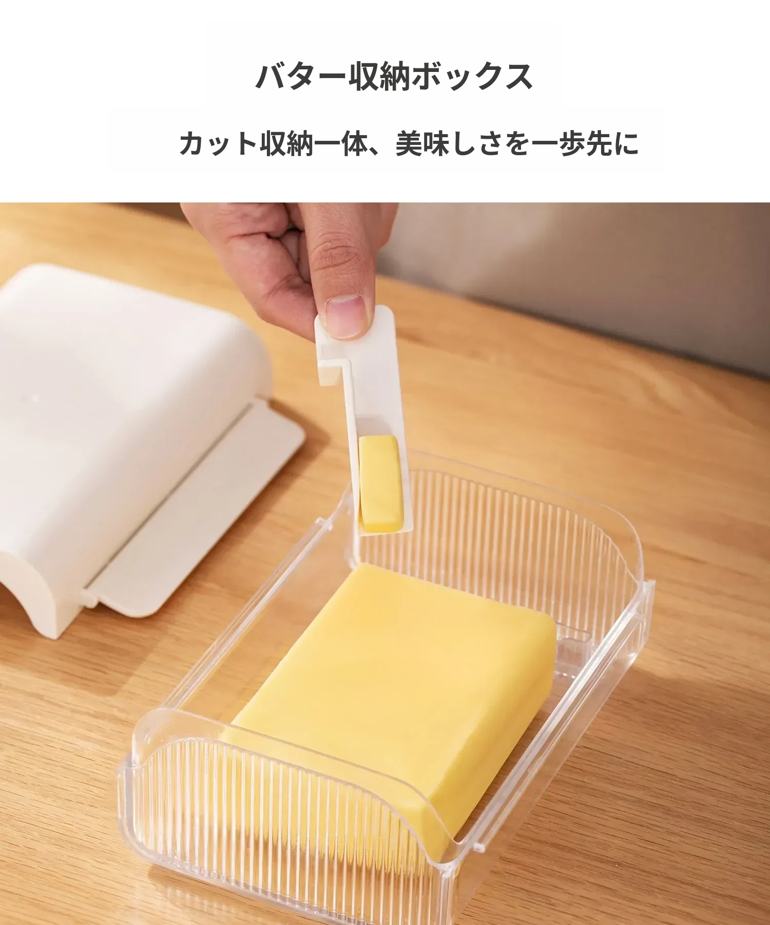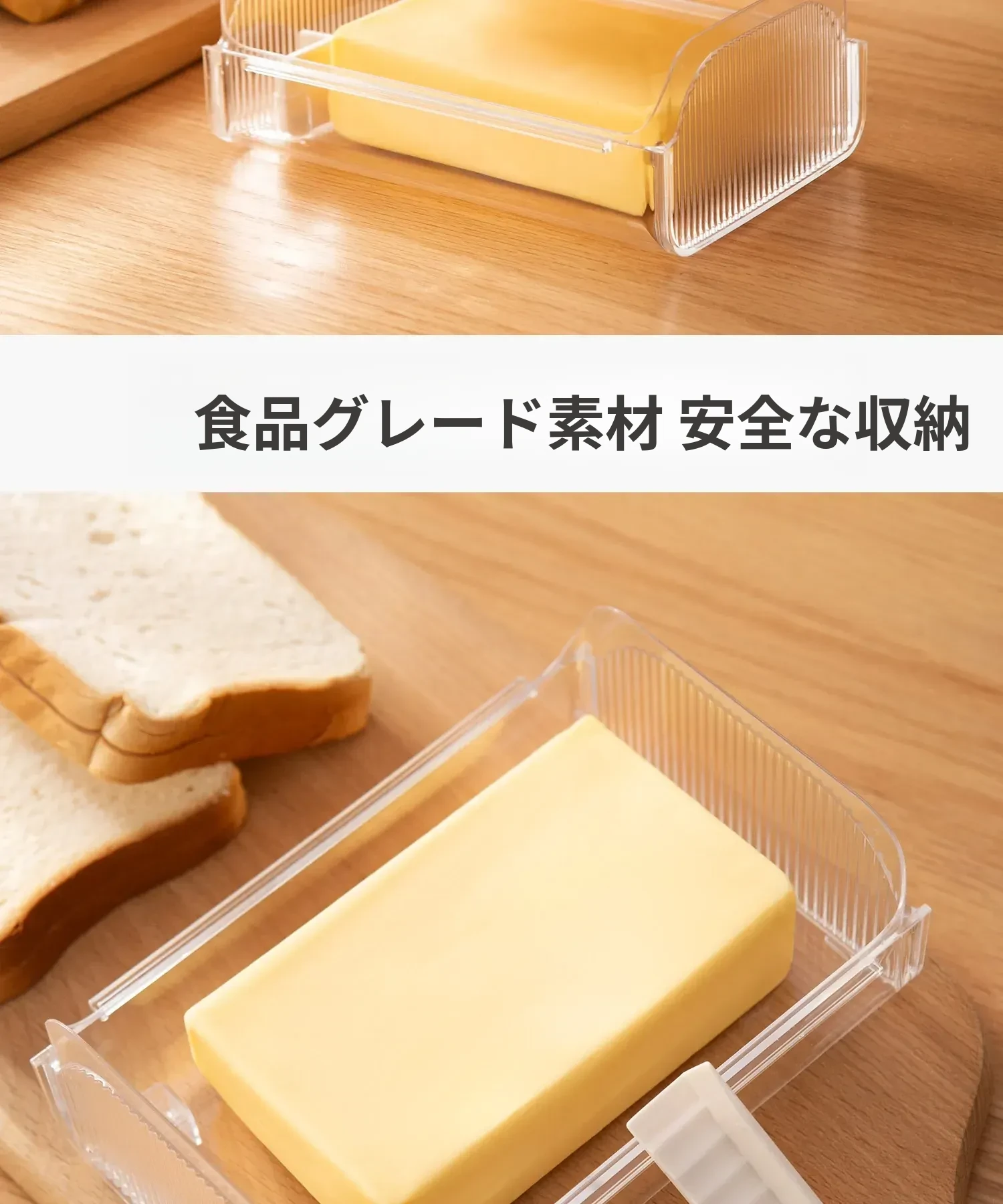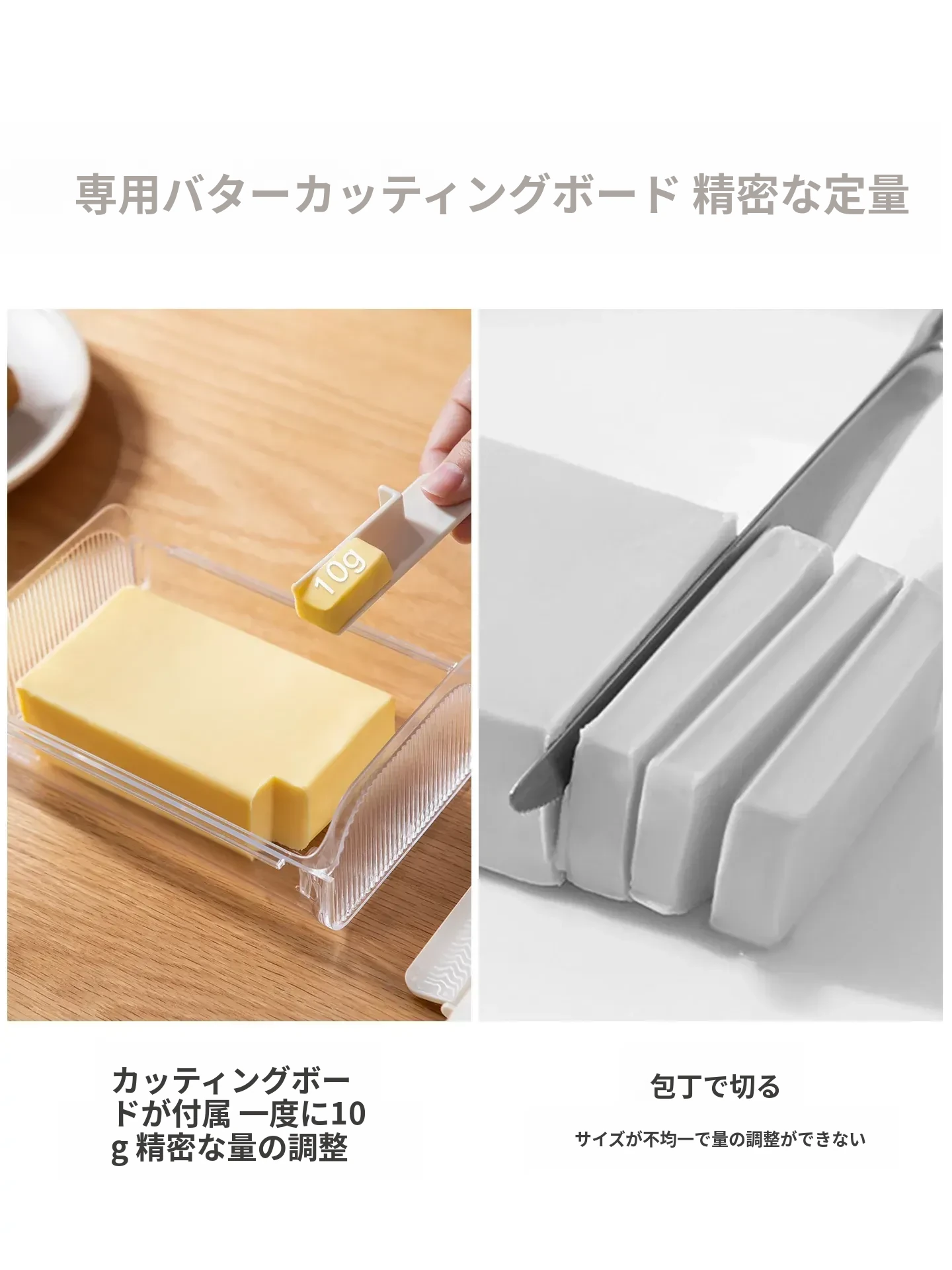 バター保存ボックス - チーズ冷蔵・冷凍用、計量カット機能付き食品グレードの密閉容器、蓋付きで鮮度をキープ!