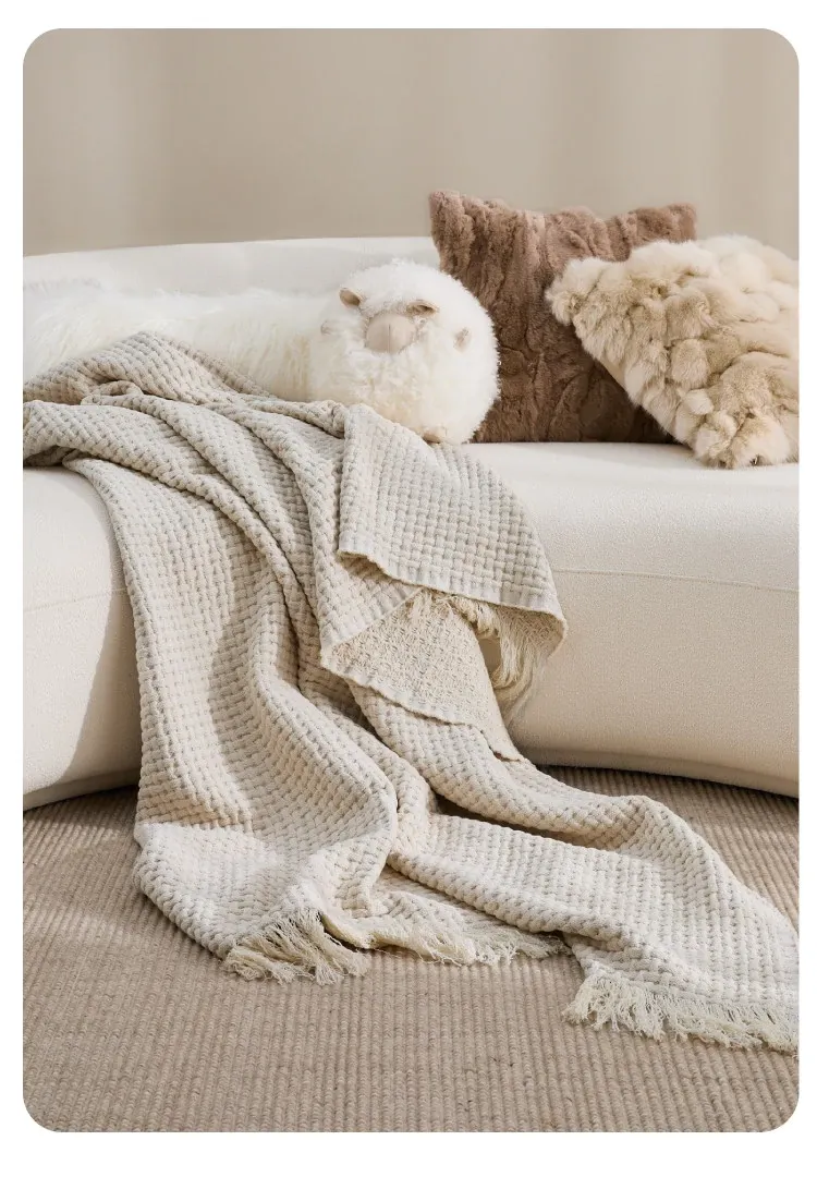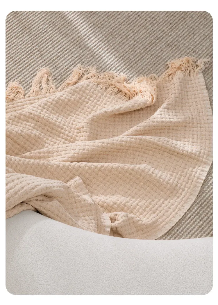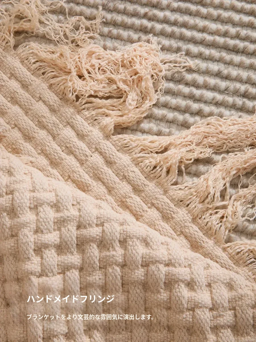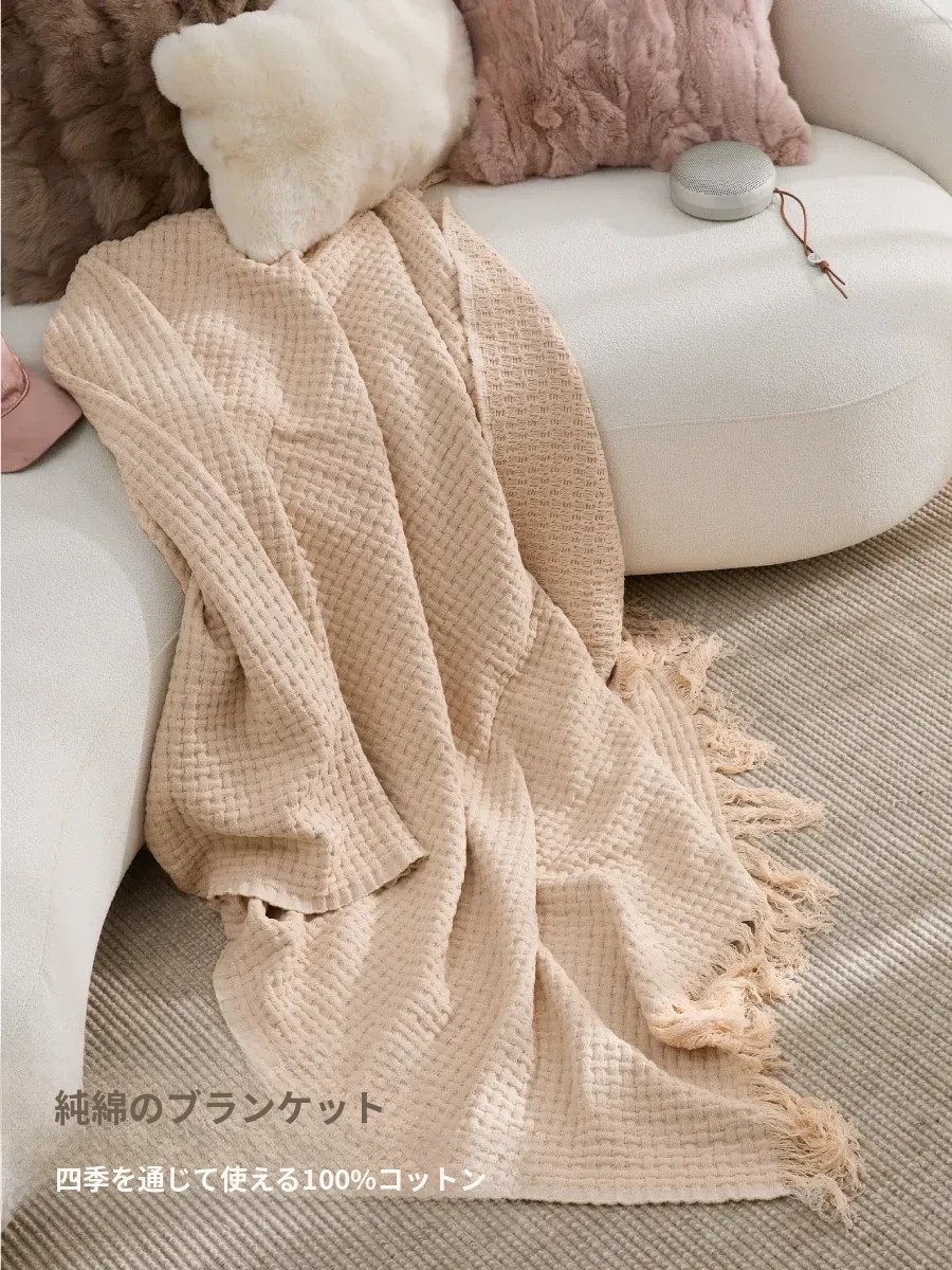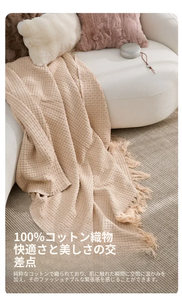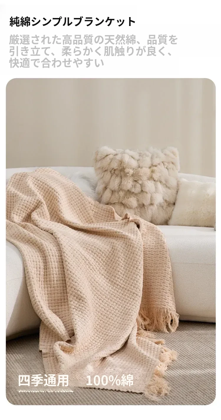涼感コットンブランケット|春夏に最適な通気性抜群のソファブランケット|ベッドサイドやリビングにぴったり|エアコン対策やリラックスに最適な毛布