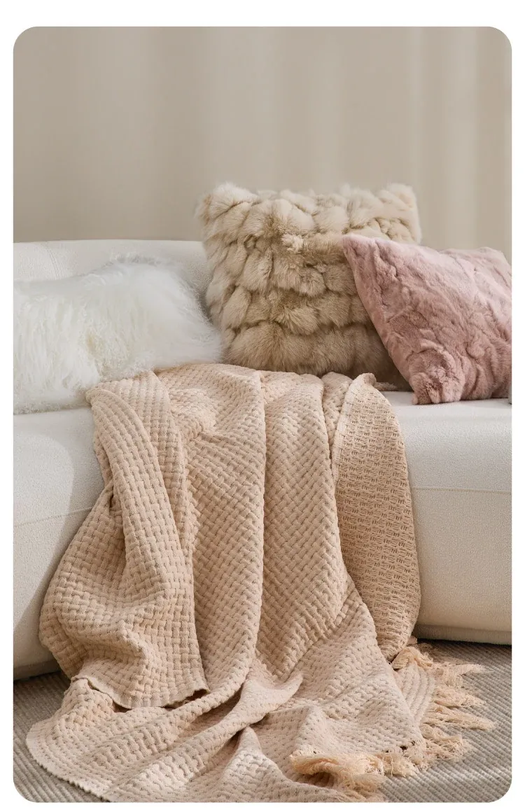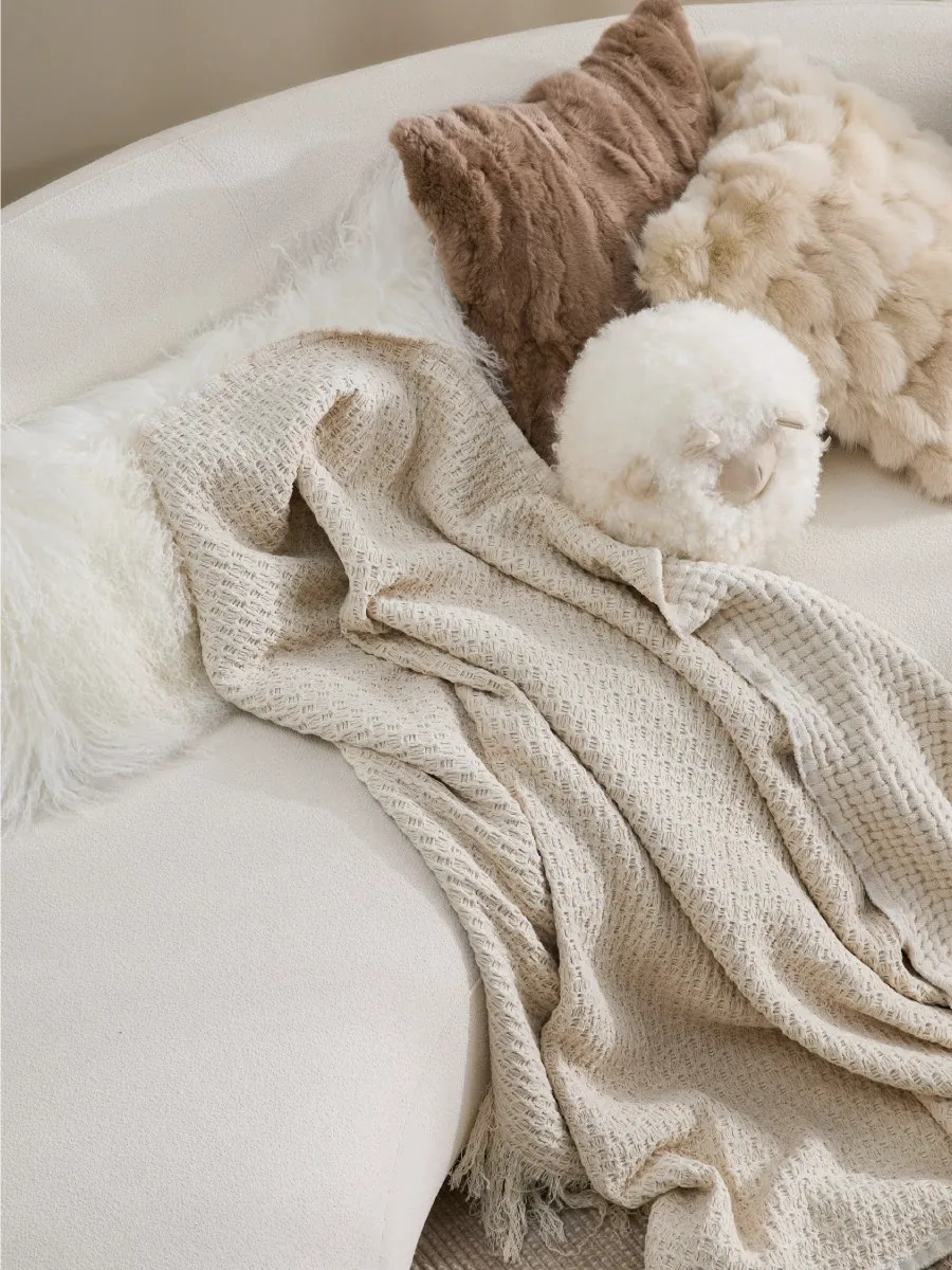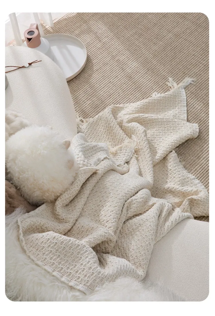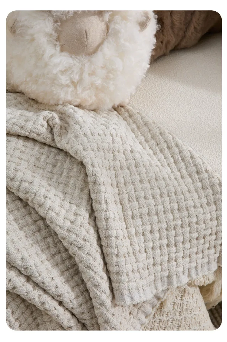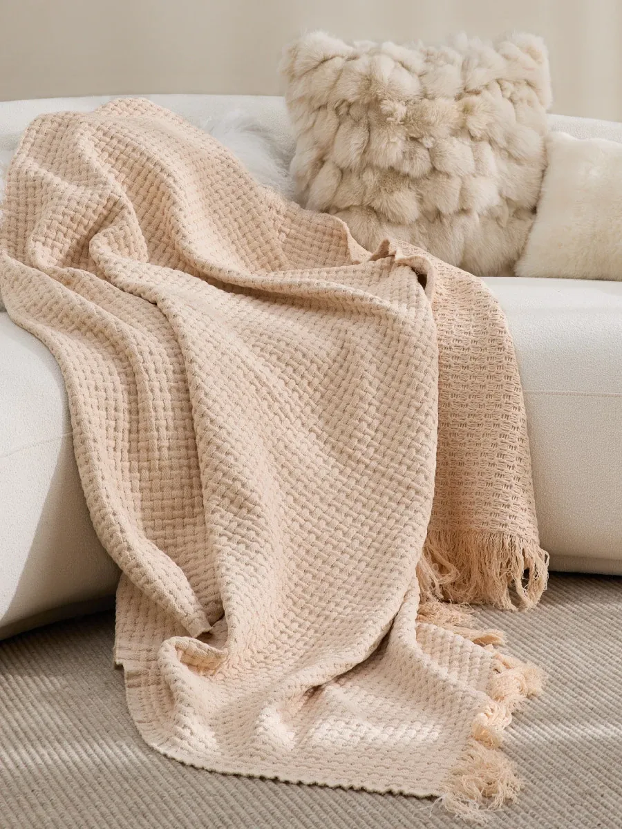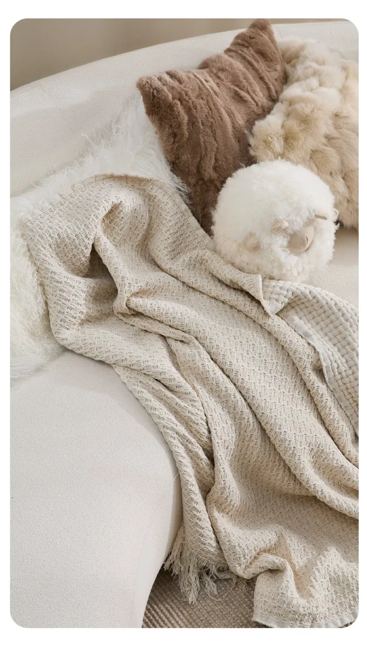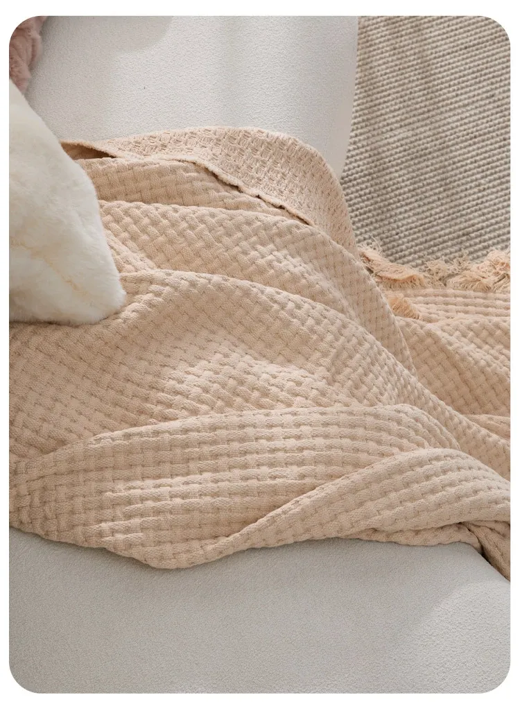 涼感コットンブランケット|春夏に最適な通気性抜群のソファブランケット|ベッドサイドやリビングにぴったり|エアコン対策やリラックスに最適な毛布
