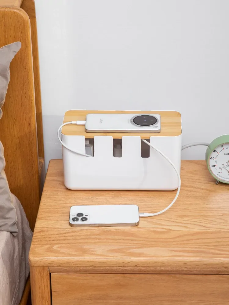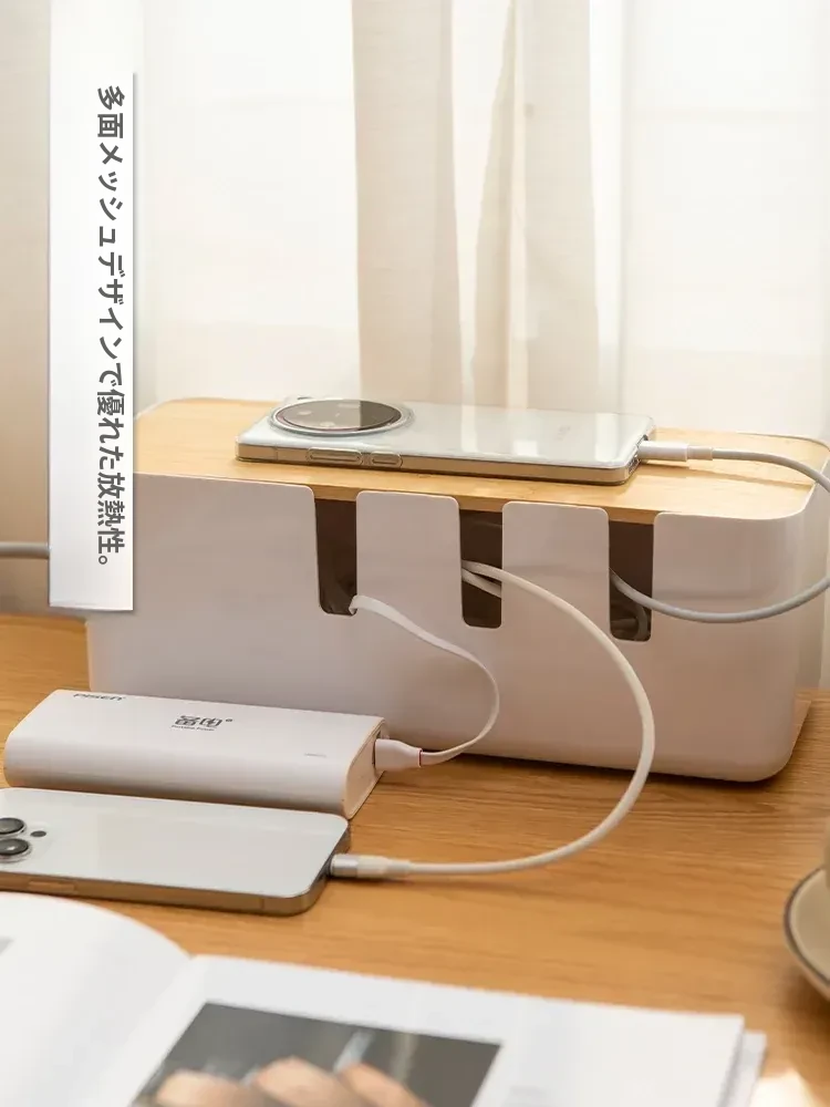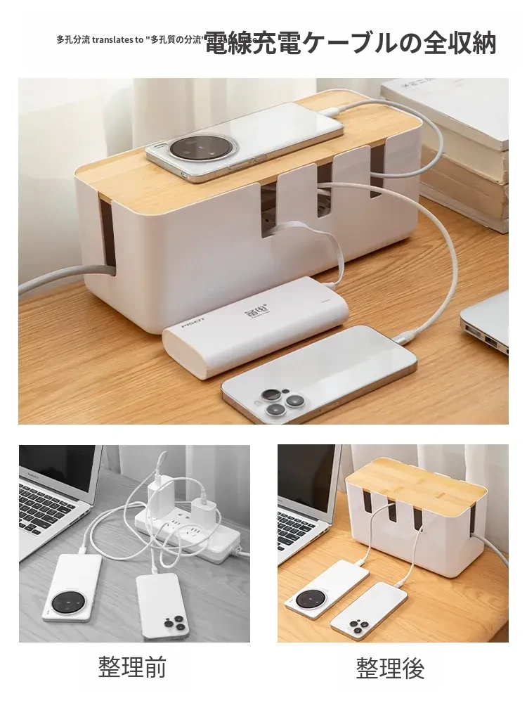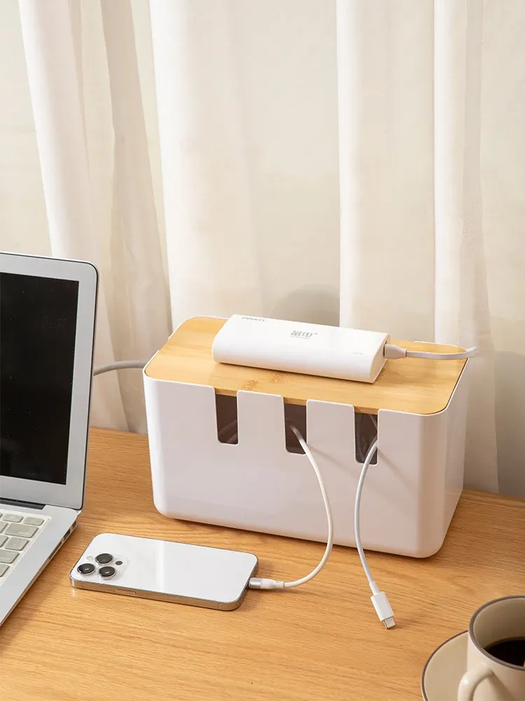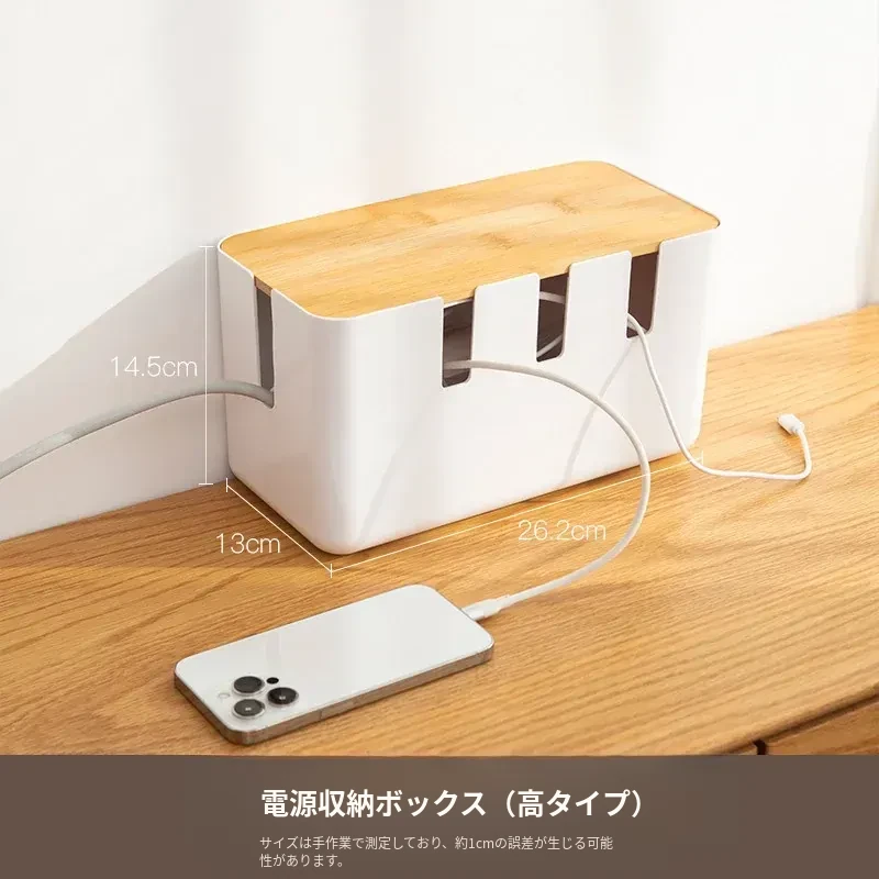 デスク周りをスッキリ整理!コンパクトな電源タップ収納ボックス - 充電器やケーブルを一元管理できる便利グッズ!データケーブルや電源ラインもすっきり整頓。あなたの作業スペースを美しく保ちましょう!