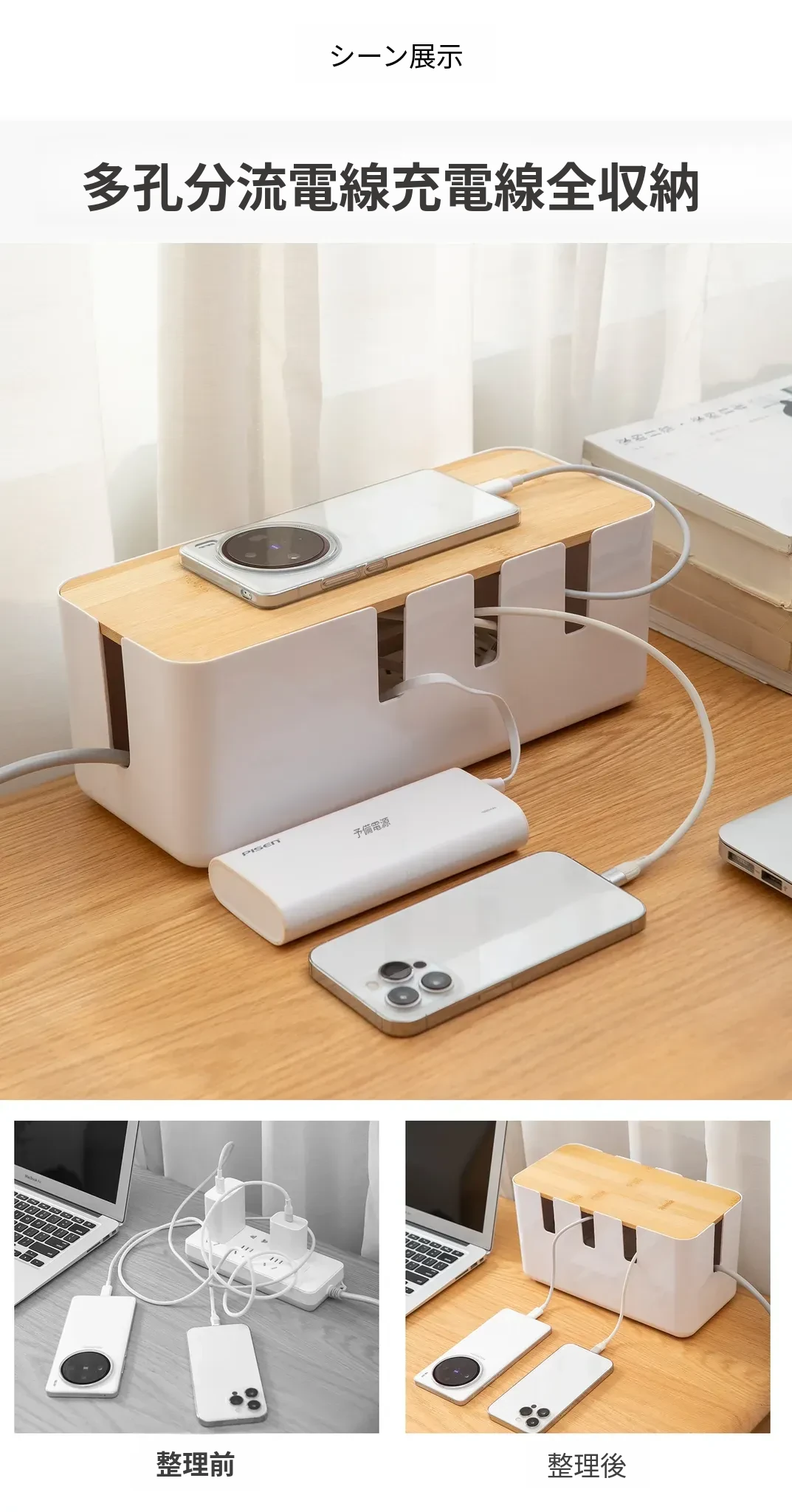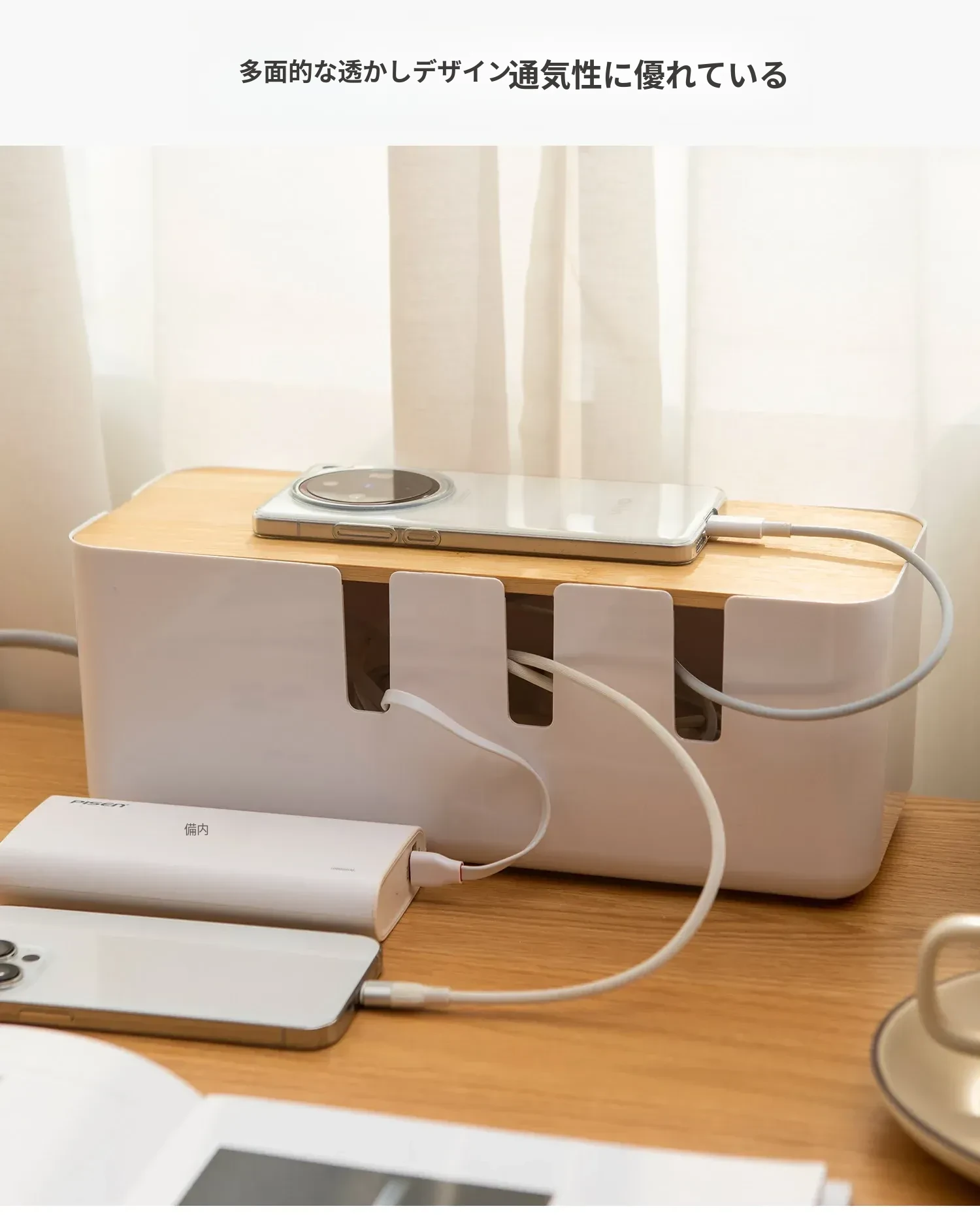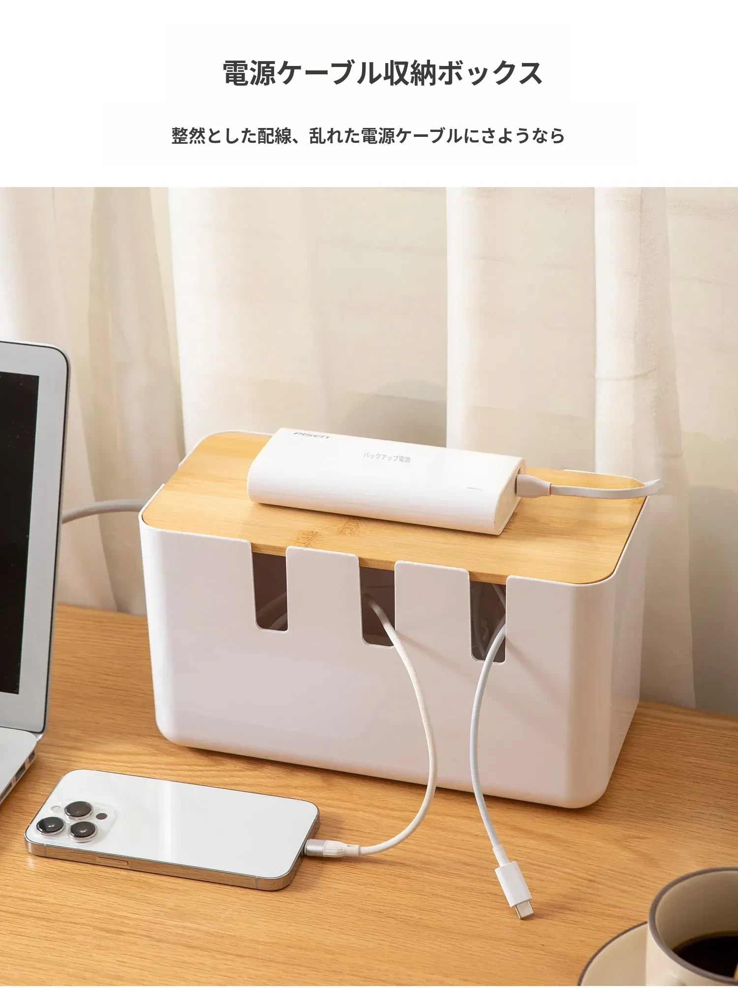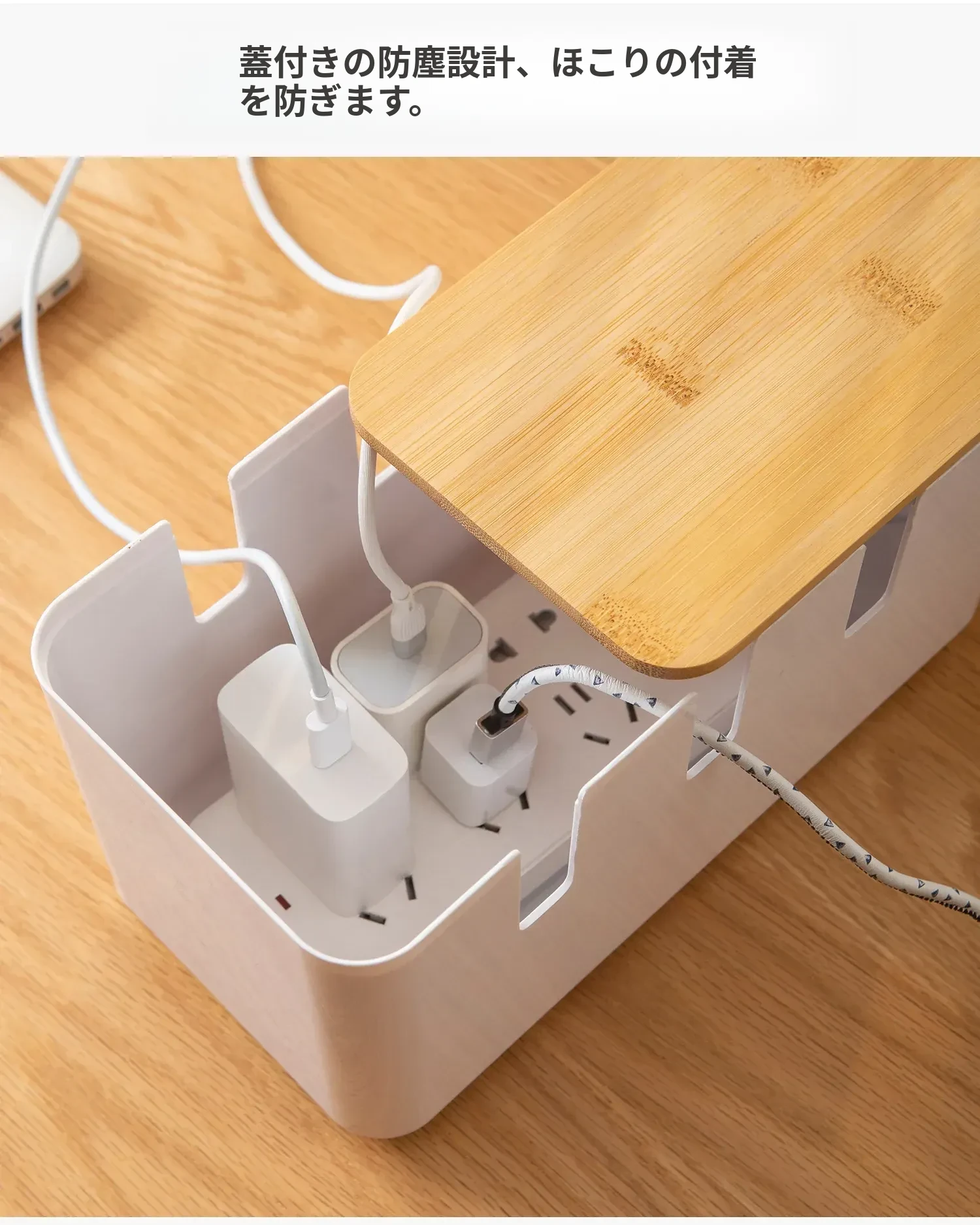 デスク周りをスッキリ整理!コンパクトな電源タップ収納ボックス - 充電器やケーブルを一元管理できる便利グッズ!データケーブルや電源ラインもすっきり整頓。あなたの作業スペースを美しく保ちましょう!