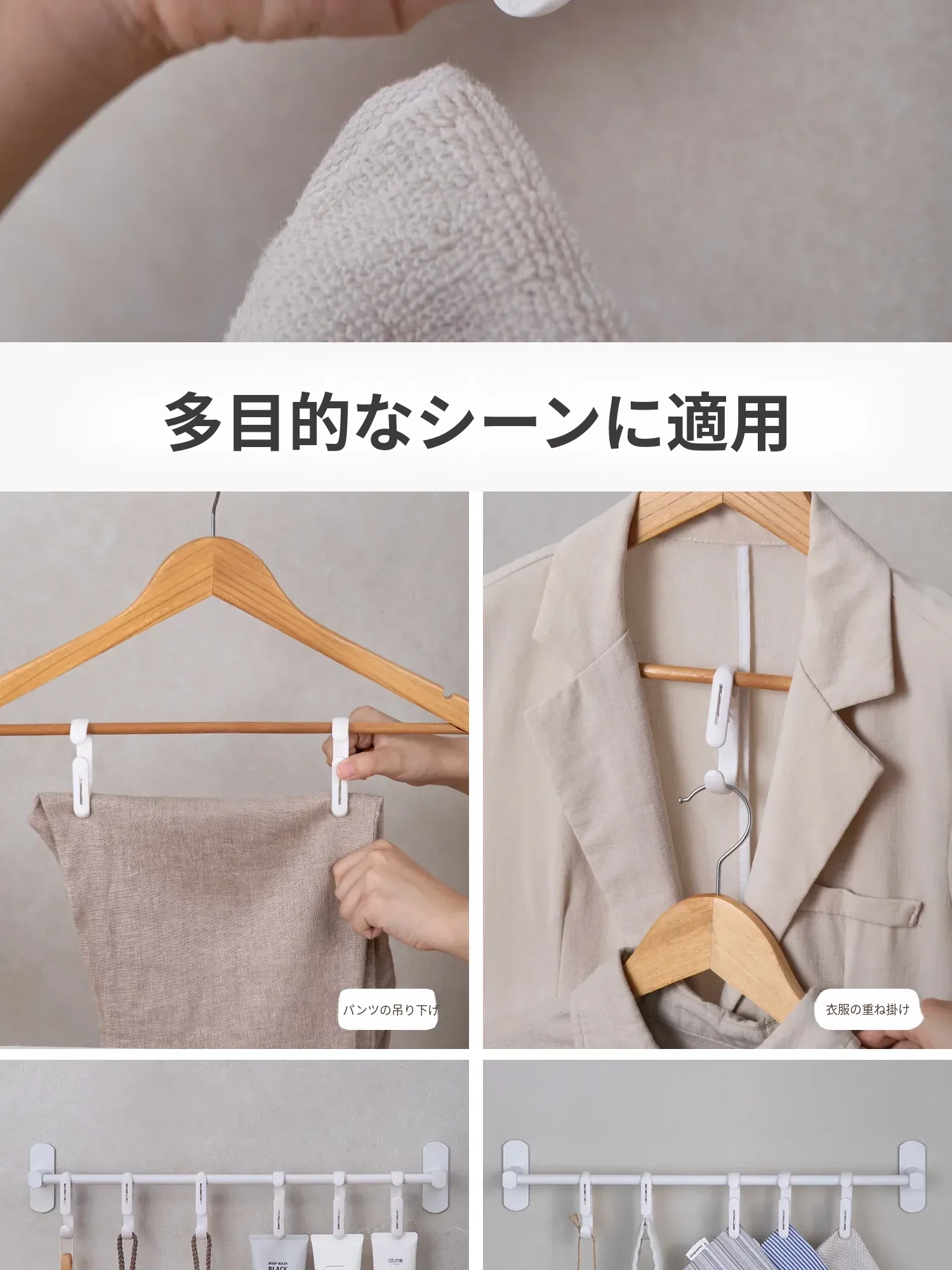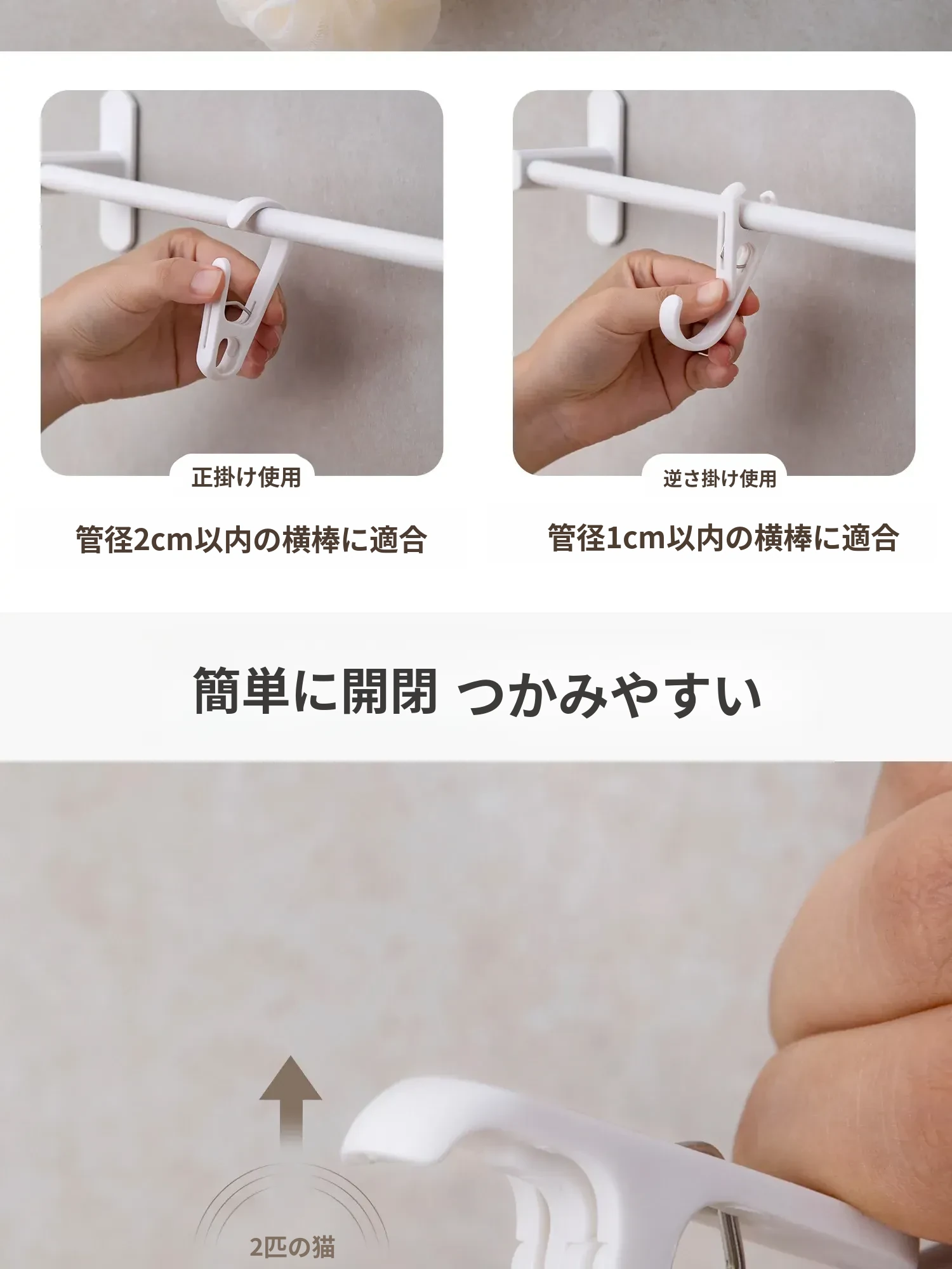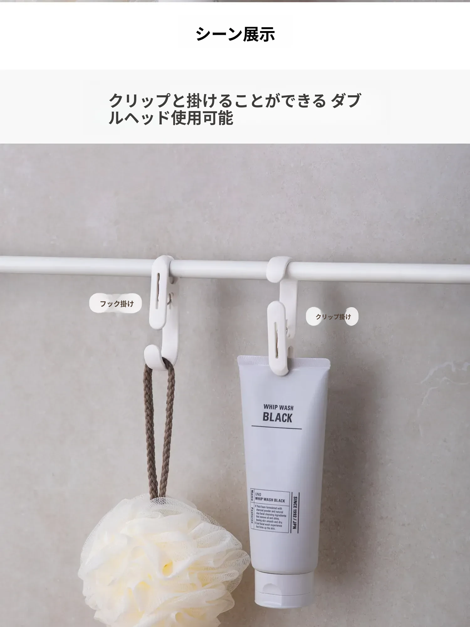 多機能フッククリップ!キッチンやバスルームで活躍する収納の必需品!ダブルヘッドのロングテールクリップで、干す・固定するのに最適!おしゃれで便利な収納アイテムを手に入れよう!
